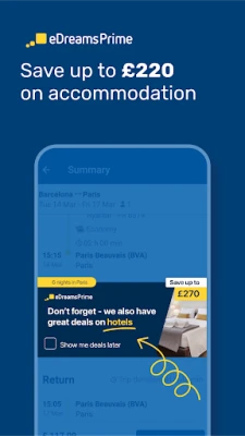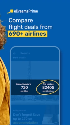 Kogege reisiplaneerimist täiesti uuel viisil, kus iga detail on hoolikalt läbi mõeldud teie mugavuse tagamiseks. eDreams on teie usaldusväärne partner teekonnal unistuste sihtkohtadesse, pakkudes sujuvat ja nauditavat elamust alates esimesest otsingust kuni kojunaasmiseni. Avastage lai valik soodsaid lennupileteid enam kui 600 lennufirma hulgast, sealhulgas tuntud nimed nagu Ryanair, British Airways ja Easyjet. Meie süsteem võimaldab teil hõlpsasti leida parimaid hindu nii pikamaalendudele kui ka soodsatele siselendudele. Lisaks piletite broneerimisele pakub eDreams mugavust pardakaartide otse rakenduses haldamiseks, lennu oleku reaalajas jälgimiseks ja automaatseks check-iniks kohe, kui see on saadaval. Olge kursis kõikide oluliste värskendustega, nagu väravanumbrid, pagasilindid, hilinemised või tühistamised, tänu isikupärastatud märguannetele. Isegi internetiühenduseta pääsete ligi oma reisikavadele, broneeringu viidetele ja pagasi lubatud kogustele jaotises "Minu Reisid".