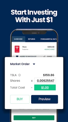 Avasta funktsioonid, mis muudavad kõrge hinnaga aktsiatesse (nt Tesla, Apple, Google, Amazon, Berkshire Hathaway) ja ETF-idesse (nt Vanguard S&P 500, PowerShares Nasdaq ETF) investeerimise taskukohaseks. Investeeri paindlikult, soetades väärtpabereid murdosades.